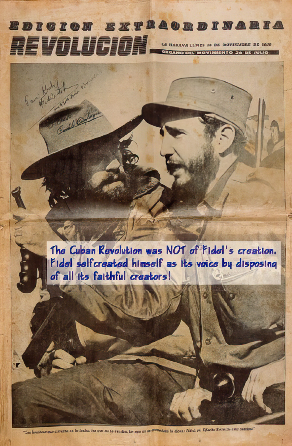 Fidel’s favorite philosopher, Heraclitus, wrote: “One can never step twice into the same stream.” Nevertheless, those who do not faithfully study history will often repeat its mistakes. Fidel, the film, barely skims over most of the revolution’s important historical lessons that are as valid for us today as ever before. A fair judicial process, Writ of Habeas Corpus and constitutional rights of individuals do not predate ‘trial by jury’ or the Magna Carta, yet they are no less revered. These time-honored concepts are at the heart of social stability in western civilization. They serve to separate human beings and their governments from the law of the jungle and the gun. Against all his original promises and pronouncements, in the interest of society’s “greater-good” and, to protect Cuba’s internal and external “national security”, etc., Castro abolished these essential judicial institutions. Cuba’s venerated Constitution of 1940 has been suspended throughout Castro’s reign. The ends do not justify the means and as in Cuba’s case, the means often become the tragic ends.